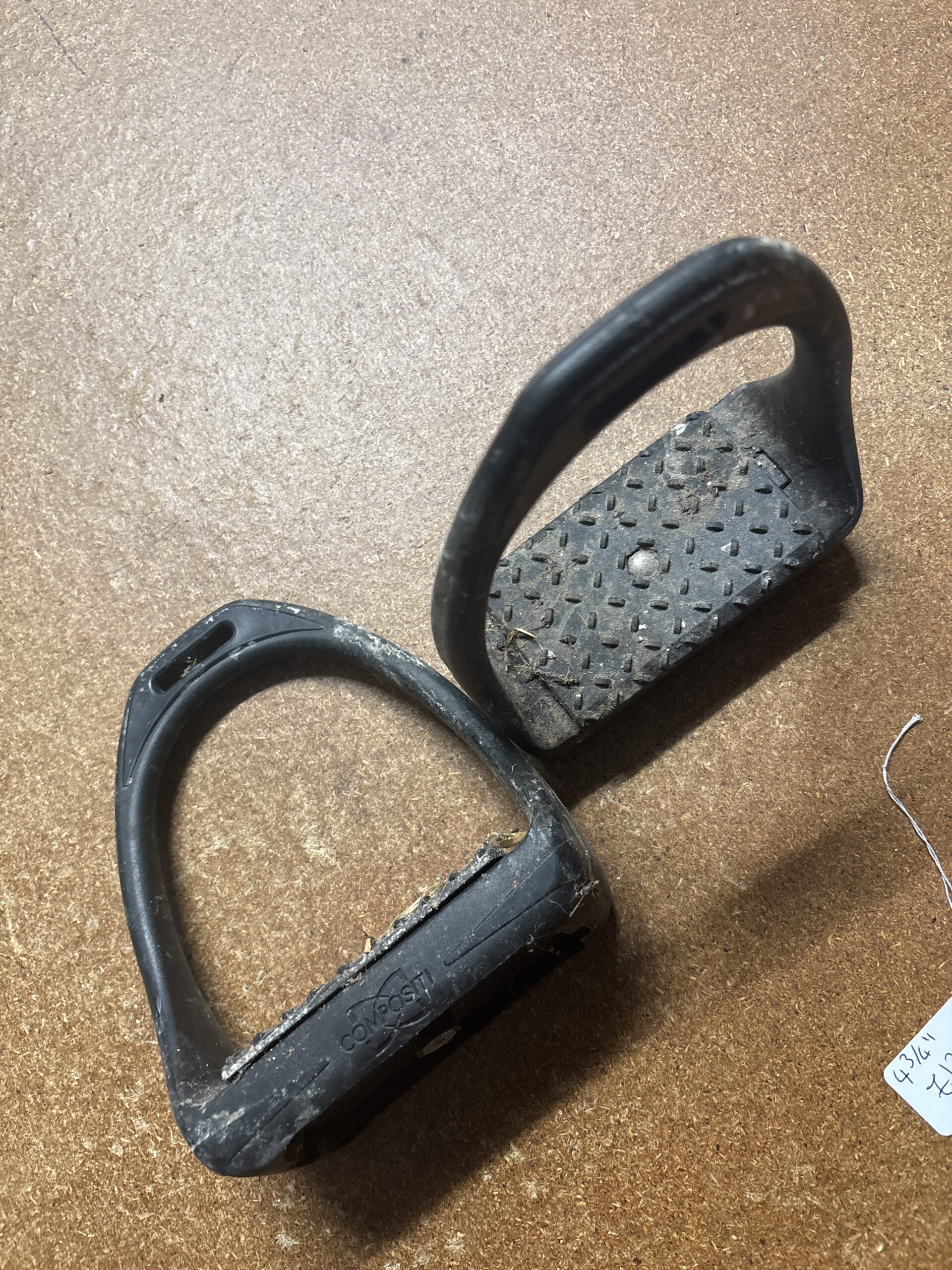 4 3/4” black compositi stirrup irons in used condition