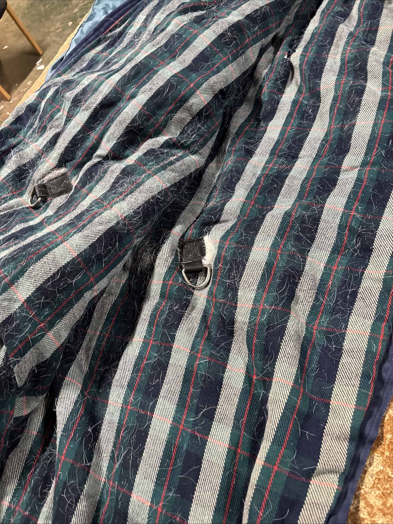6’ medium weatherbeeta stable rug hairs to inside, has had a couple of repairs to the outside as pictured