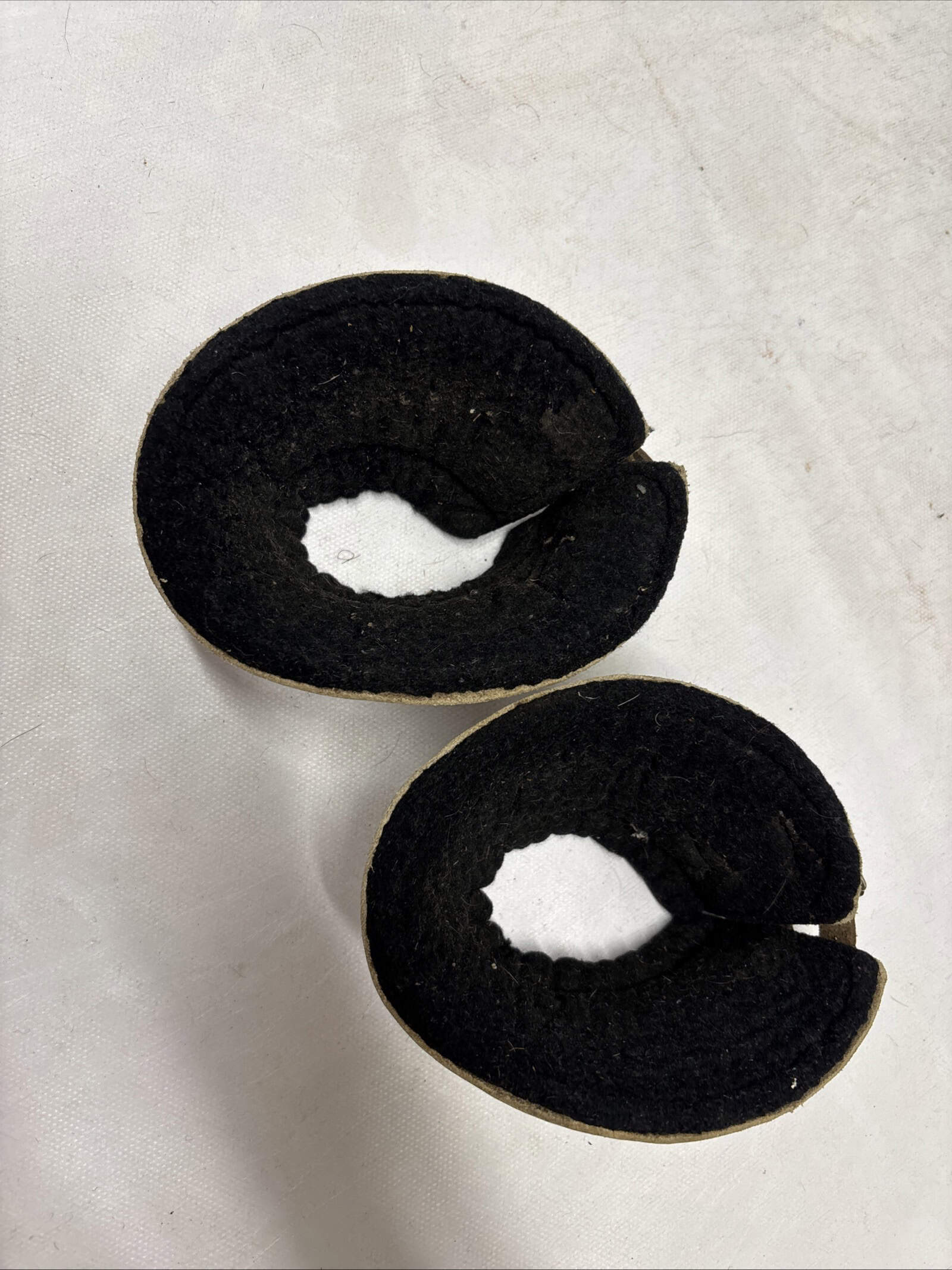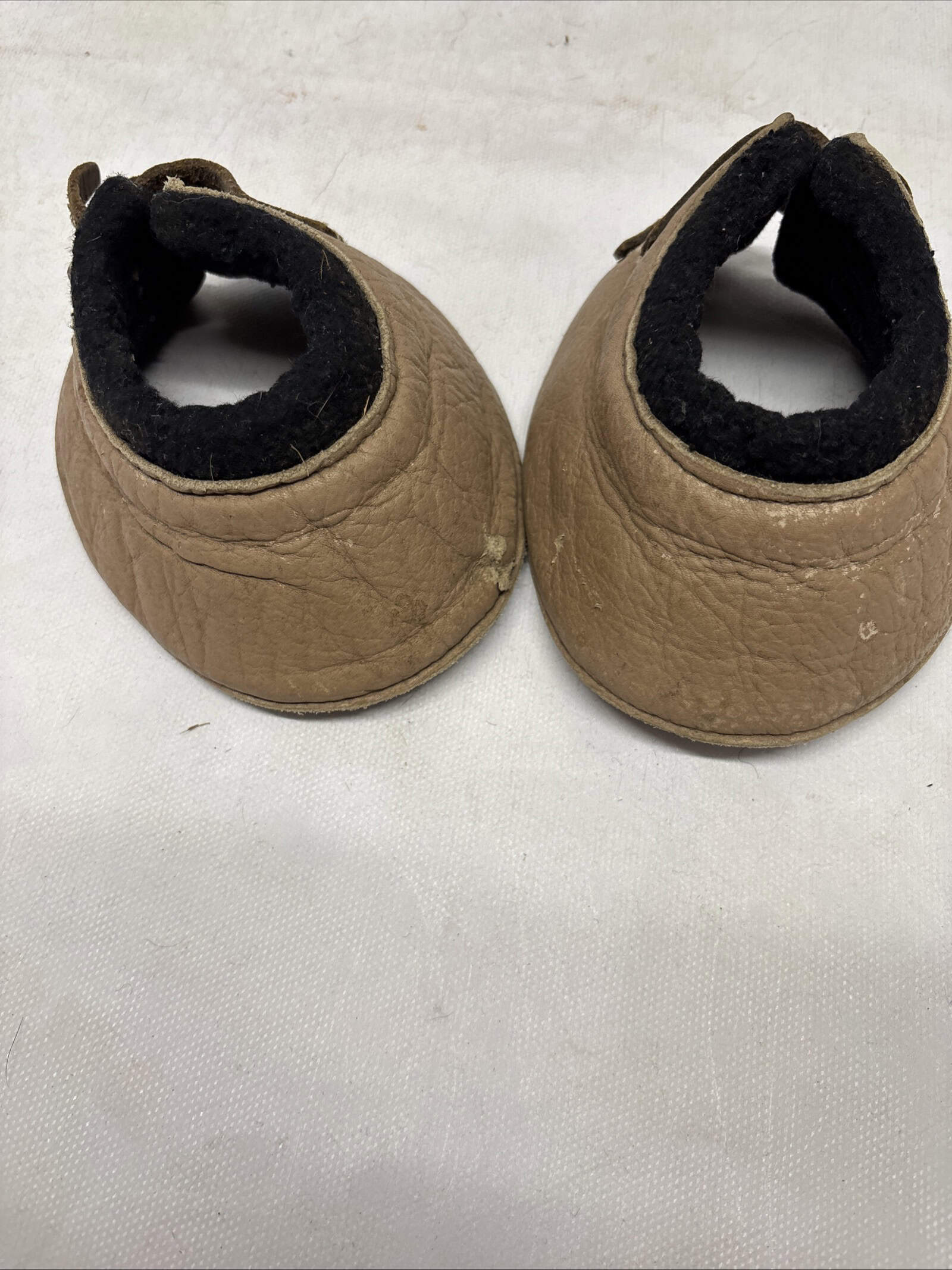 Medium over reach boots with leather and buckle fastenings, buckles have some rust on but no tears to the boots!