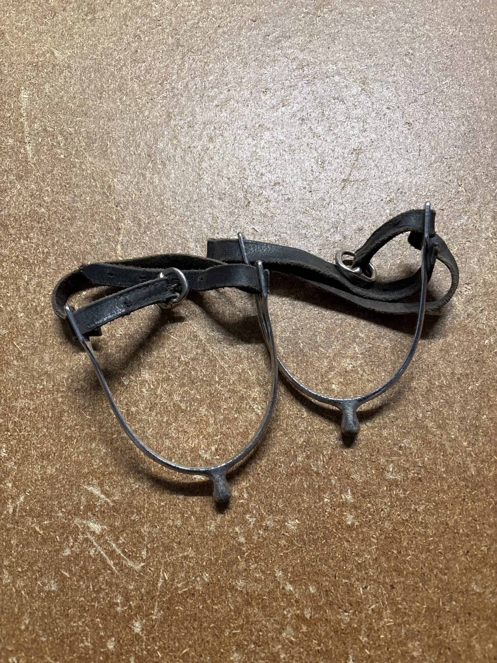 Set of spurs with leather straps some pitting to metal