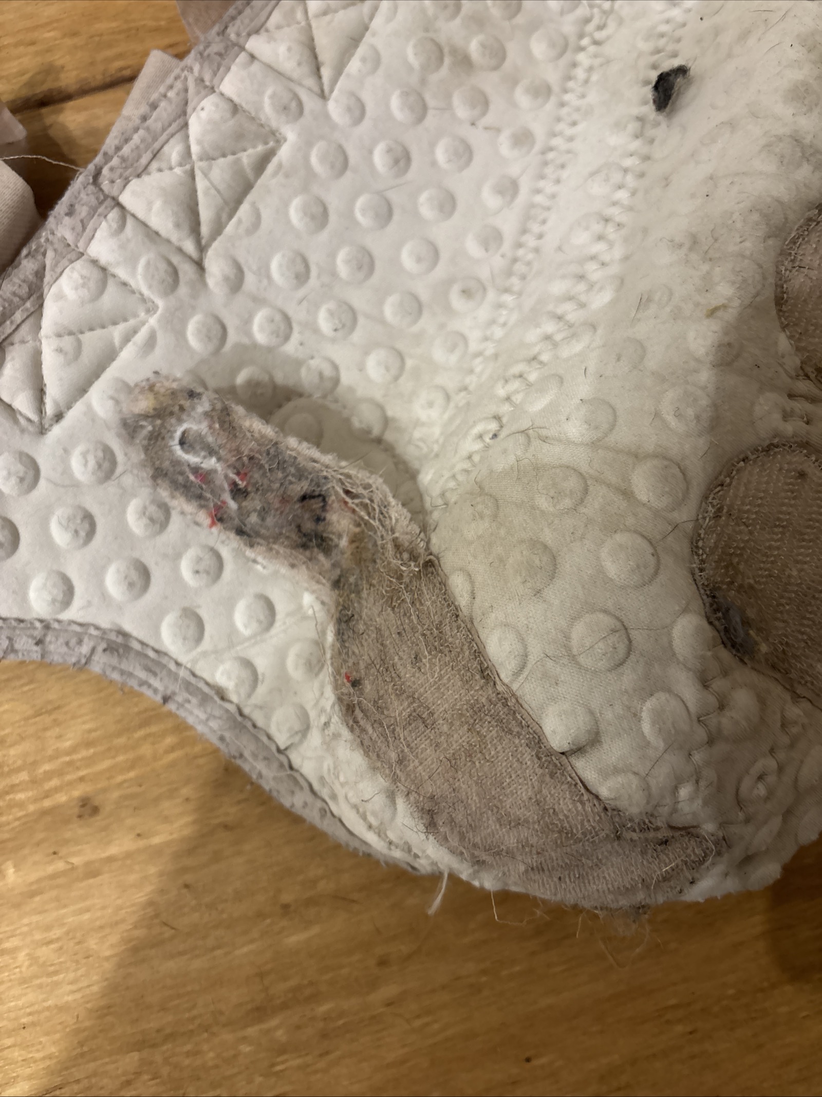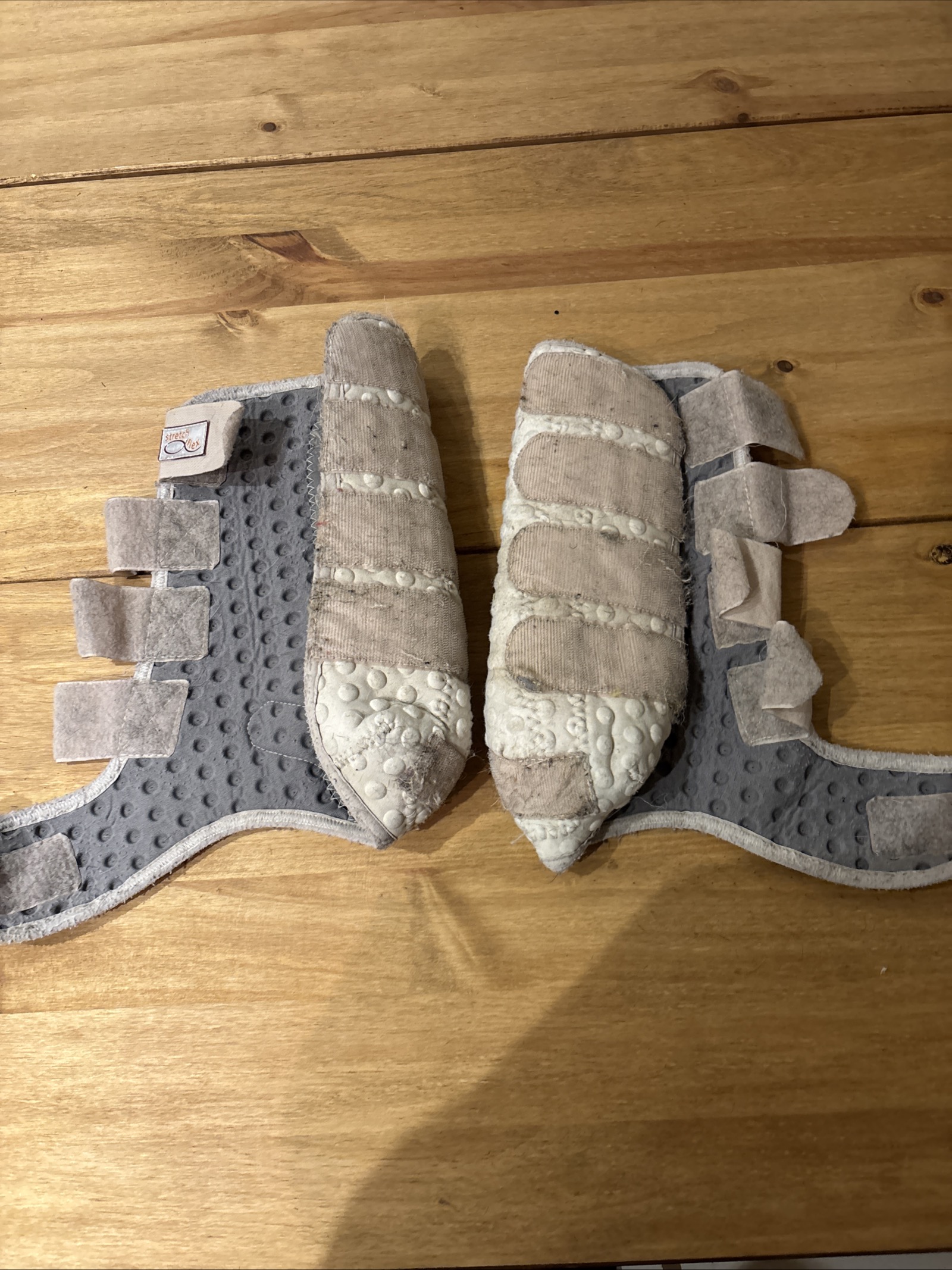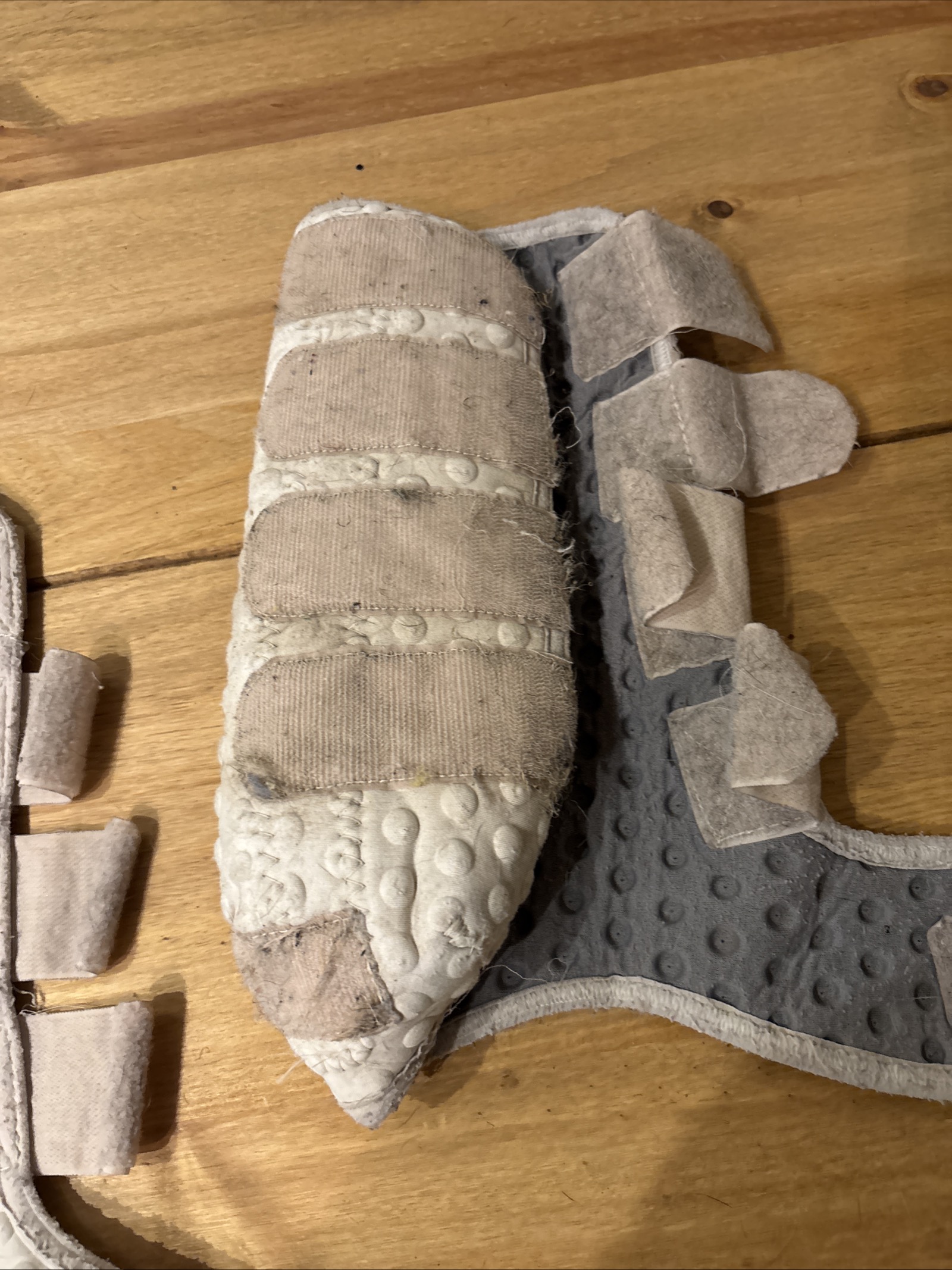 White size 4/full stretch and flex training wraps are well used, the Velcro is coming off in a couple of places but the rest of the Velcro is very sticky still – some bits in the Velcro but for the most part it has been removed!